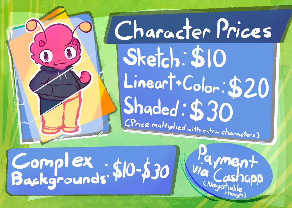-Payment method ill always accept is Cashapp. Negotiation for a different way of paying is possible but not a guarantee.